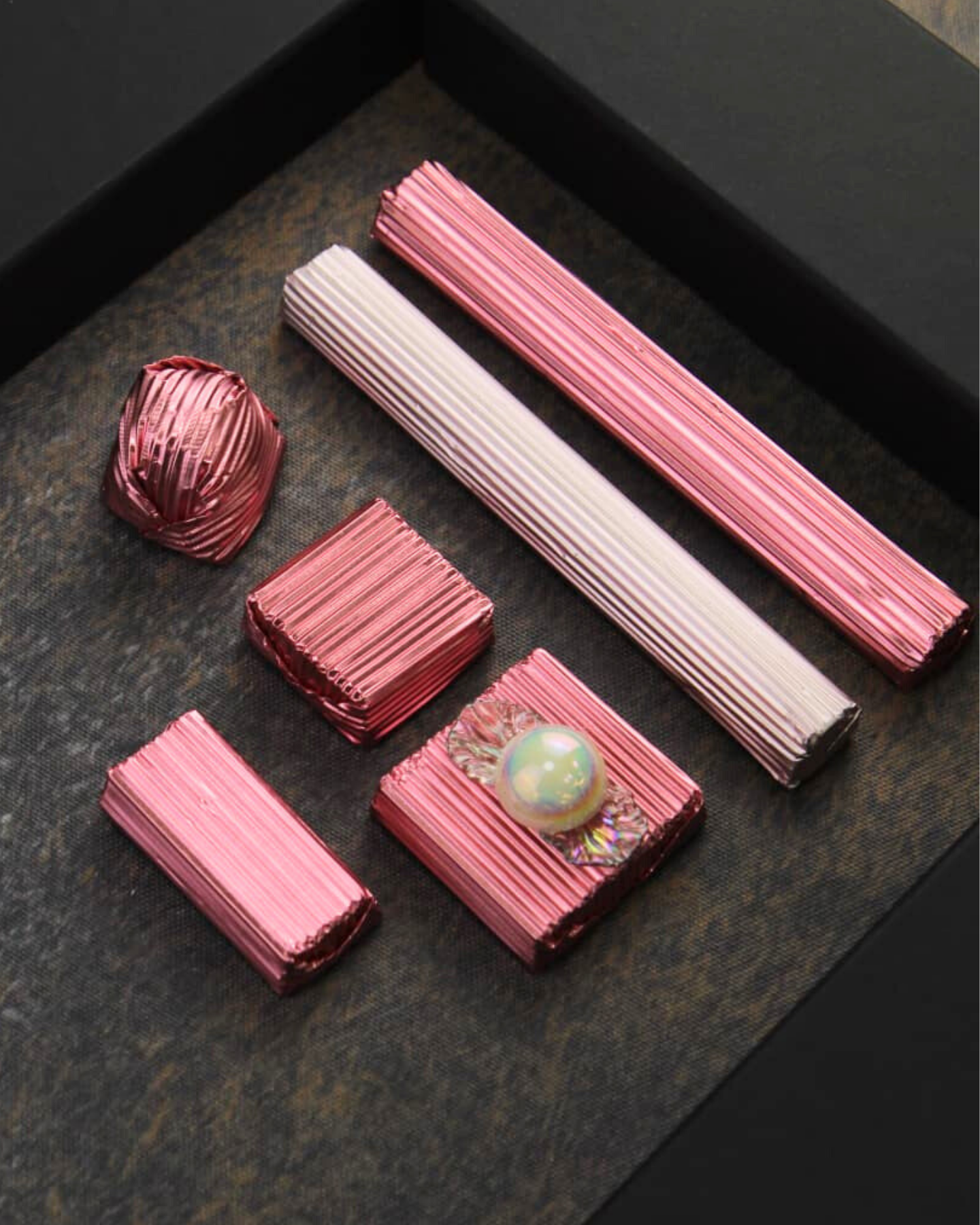 Kare Dolgulu Pembe Dekorlu Çikolata