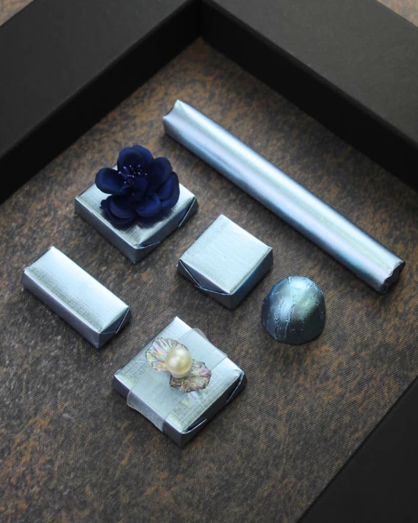 Kare Dolgulu Mavi Çiçekli Dekorlu Çikolata