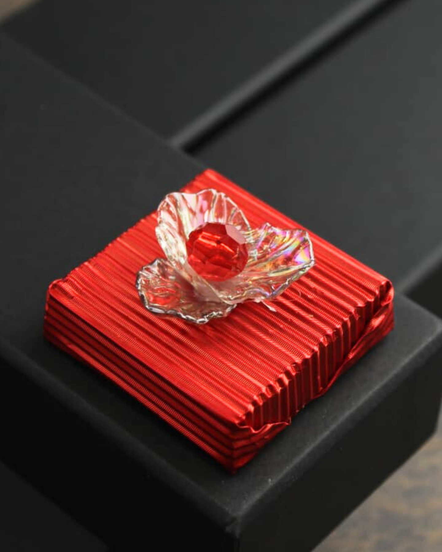 Kare Dolgulu Kırmızı Dekorlu Çikolata