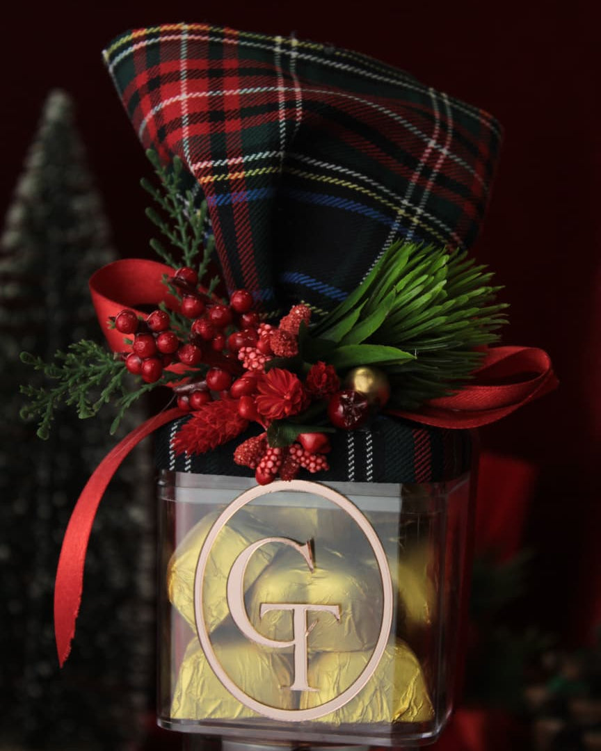 Yılbaşı Koleksiyonu - Simli Ahşap Kutu 750 g Ekose Desen
