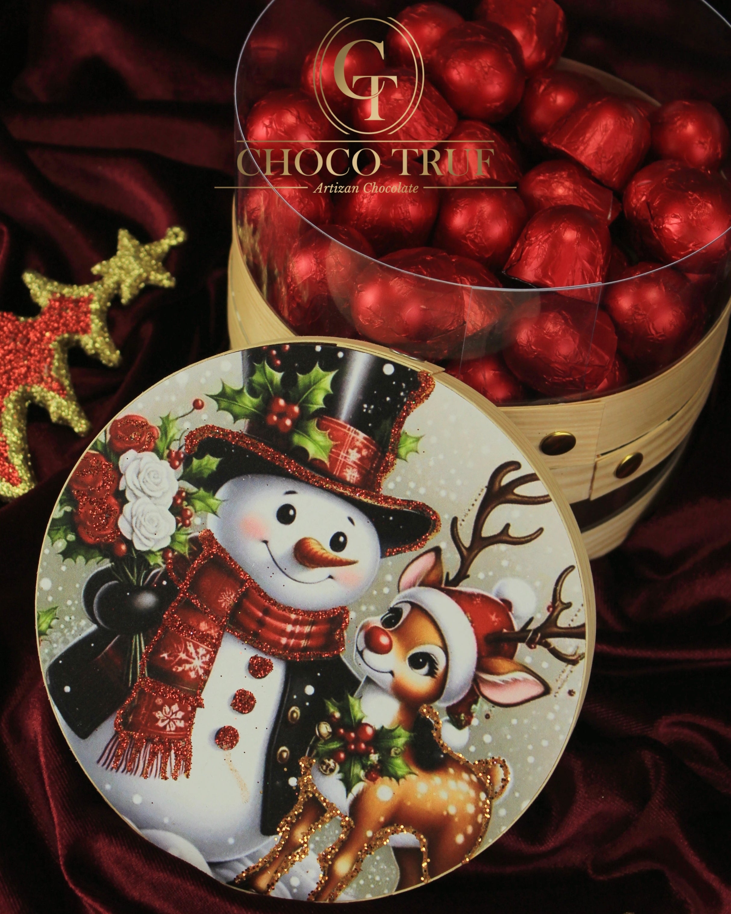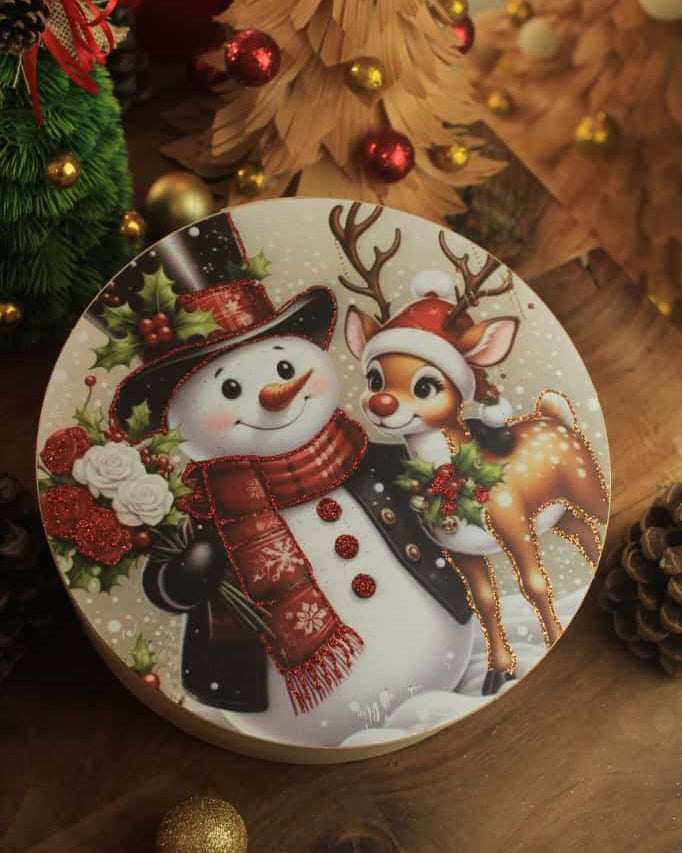 Yılbaşı Koleksiyonu - Simli Ahşap Kutu 750 g Kardan Adam ve Geğik